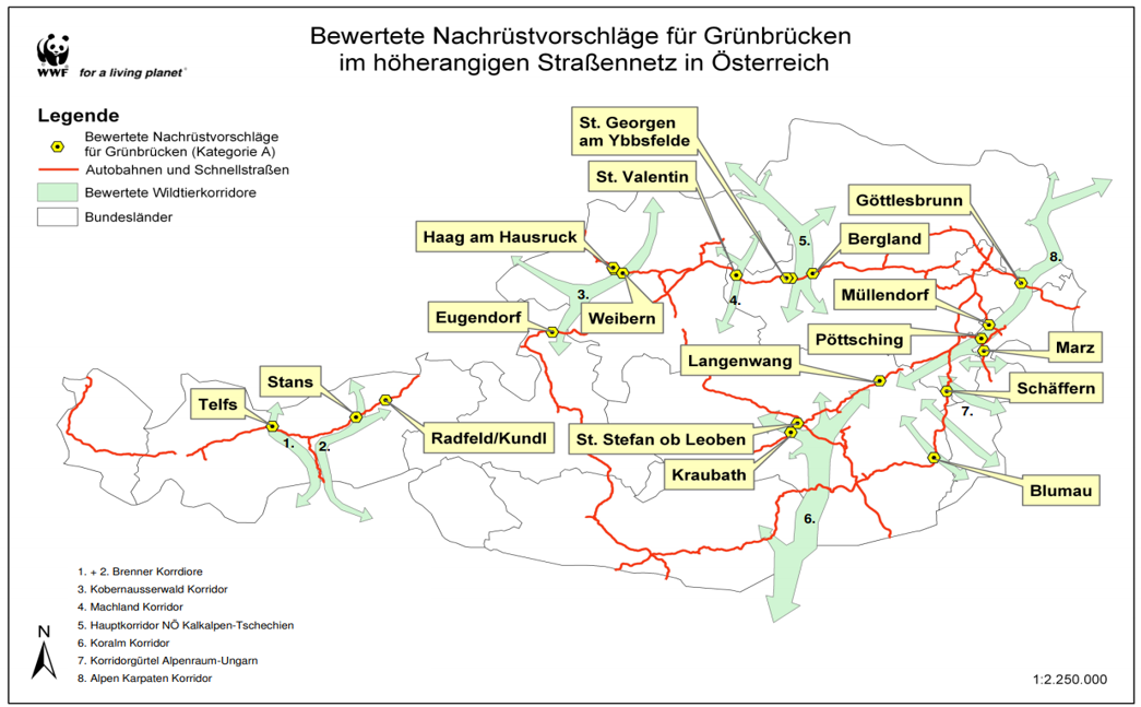 In 2005, modelling by Environment Agency Austria identified areas for retrofitting motorways to make green corridors permeable again. The findings led to an official directive from BMIMI mandating ASFiNAG to introduce green bridges every 3km on new-build motorways and retrofit 20 green bridges on existing roads up to 2026/27. To date, with just five of the 20 already built, there is still a long way to go to meet this objective.