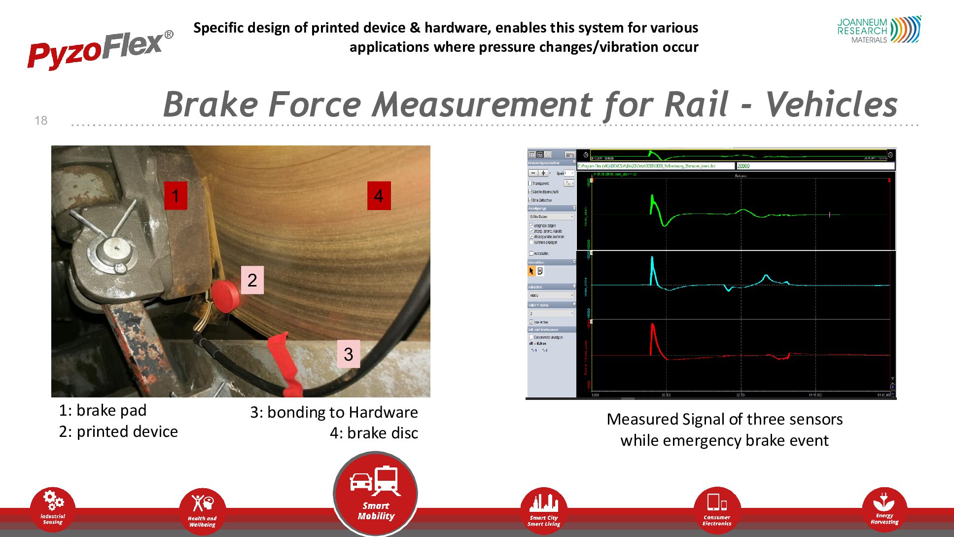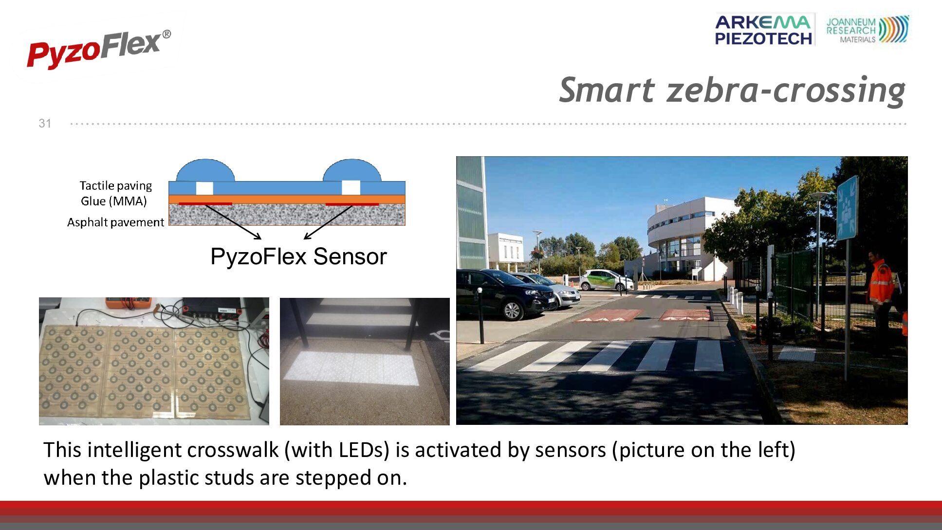 These openings include brake force measurement of trains, which avoids the costly and time-consuming task of dismantling heavy parts, and intelligent zebra crossings (PyzoFlexÂź sensors) that light up when pedestrians step on plastic studs.