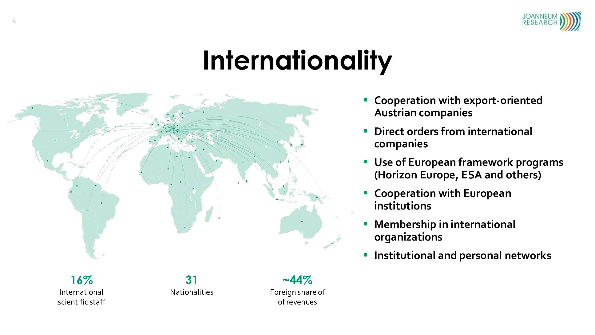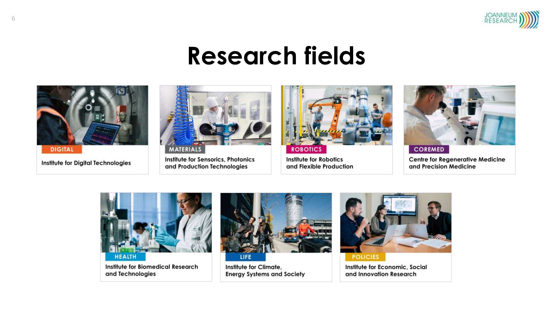 As a not-for-profit organisation, JOANNEUM RESEARCH employs around 500 people across seven research institutes located throughout Austria. Together they develop solutions in the business fields of environment and sustainability, health & care, production and manufacturing, mobility, security and defence, space and politics and society.